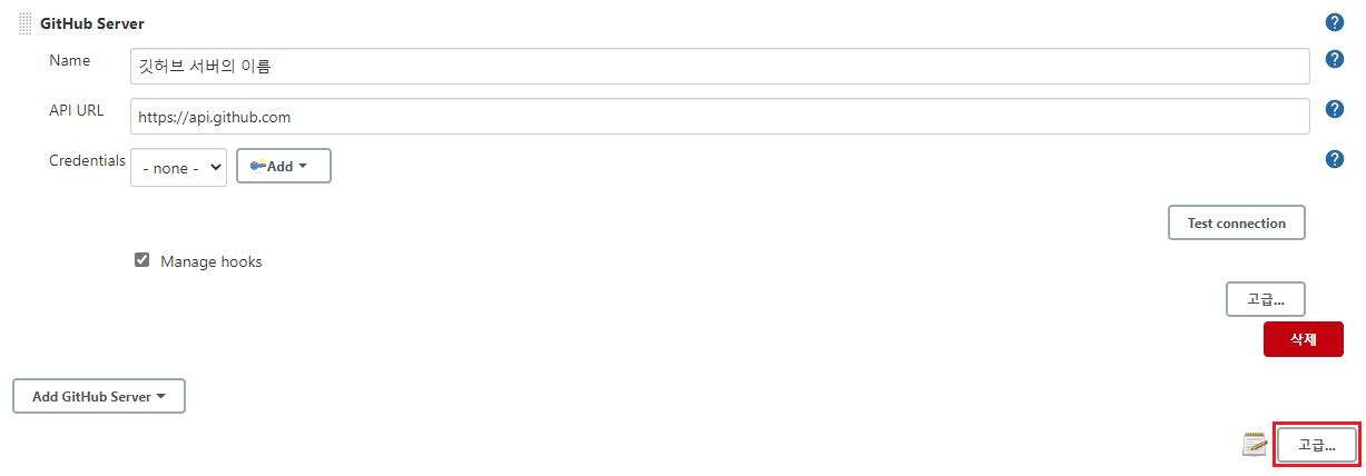 - 젠킨스 관리를 누르고 시스템 설정을 누르고 GitHub 메뉴로 이동한다.