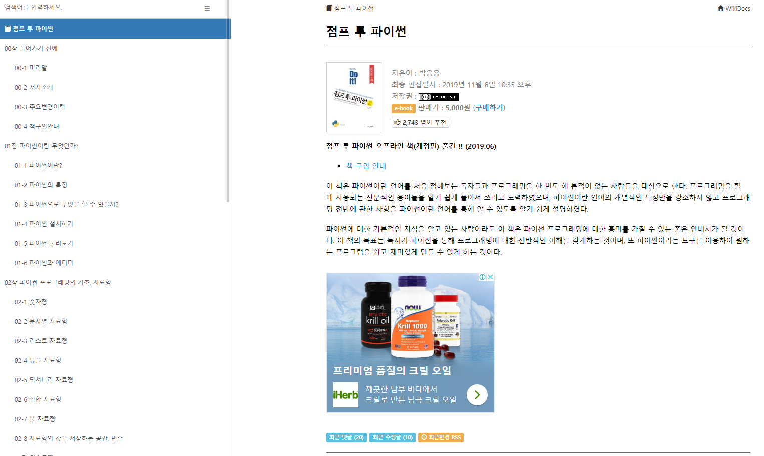 파이썬을 상세히 다루는 책이 많이 나오는데 그 책중에 온라인에서 무료로 공개되어 있는 책들도 있습니다.
