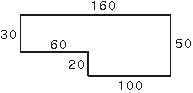 반시계방향으로 남쪽으로 30m, 동쪽으로 60m, 남쪽으로 20m, 동쪽으로 100m, 북쪽으로 50m, 서쪽으로 160m 이동하면