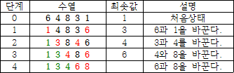 처음상태에서 최솟값을 찾아 맨앞의 수와 자리를 바꾼다.