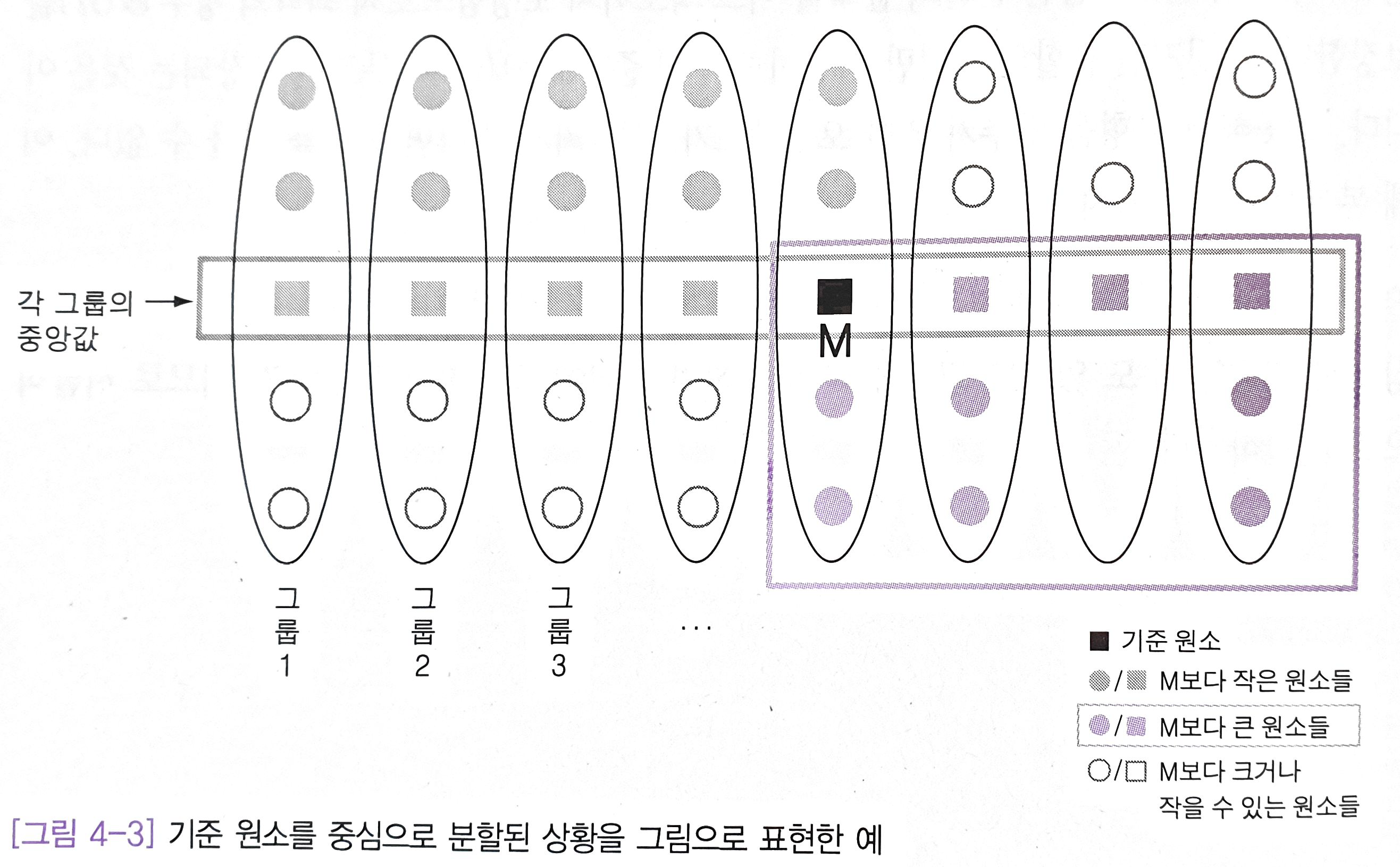 쉽게 배우는 알고리즘 선택 알고리즘 그림 4-3 최악의 경우 선형시간 선택 알고리즘