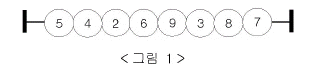 N개의 숫자 구슬이 <그림 1>과 같이 막대에 꿰어져 일자로 놓여 있다.