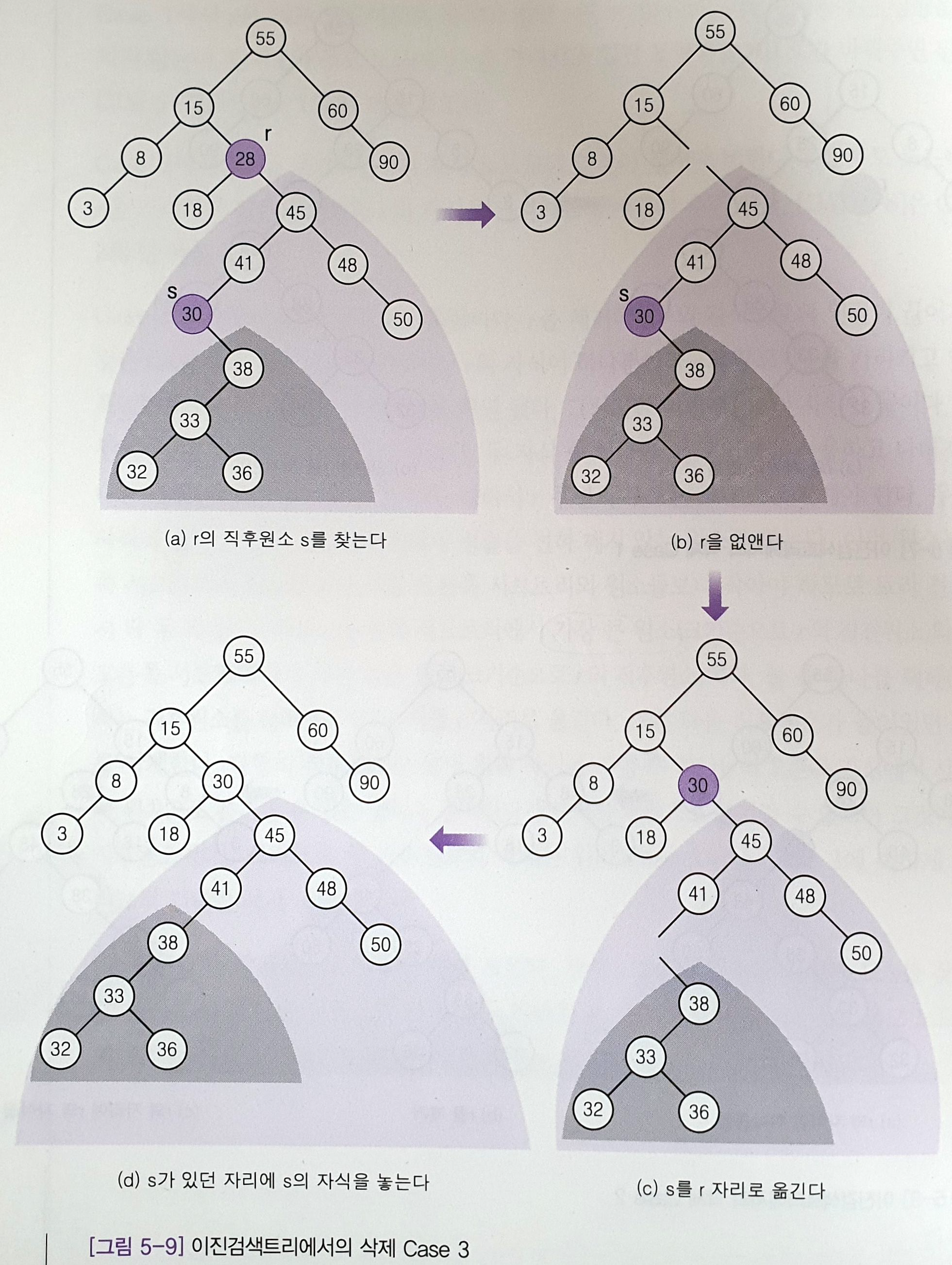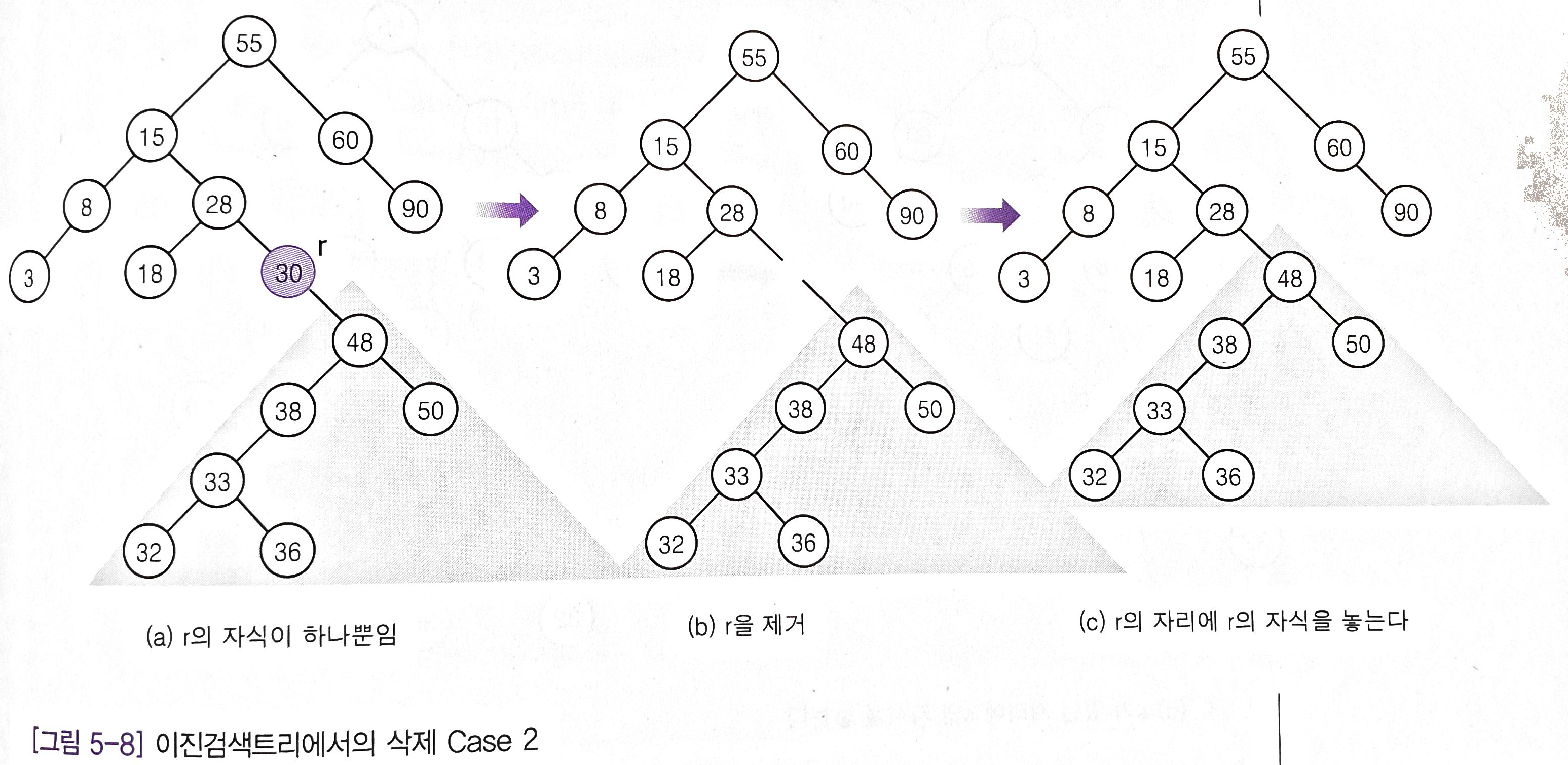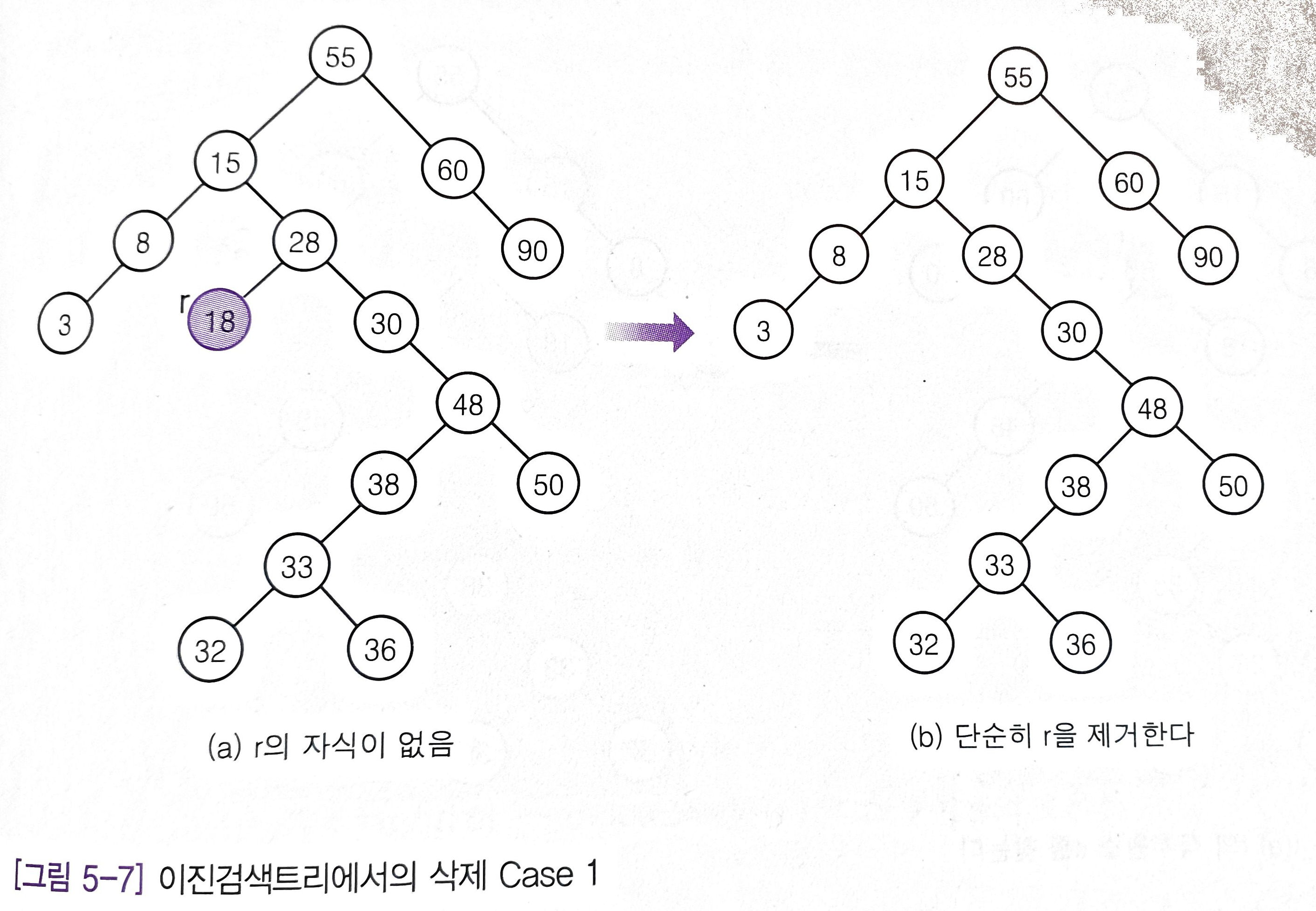 쉽게 배우는 알고리즘 이진 검색 트리 그림 5-9 이진 검색 트리에서의 삭제 알고리즘