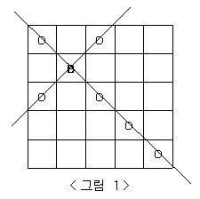 <그림 1>과 같은 정사각형 체스판 위에 B라고 표시된 곳에 비숍이 있을 때