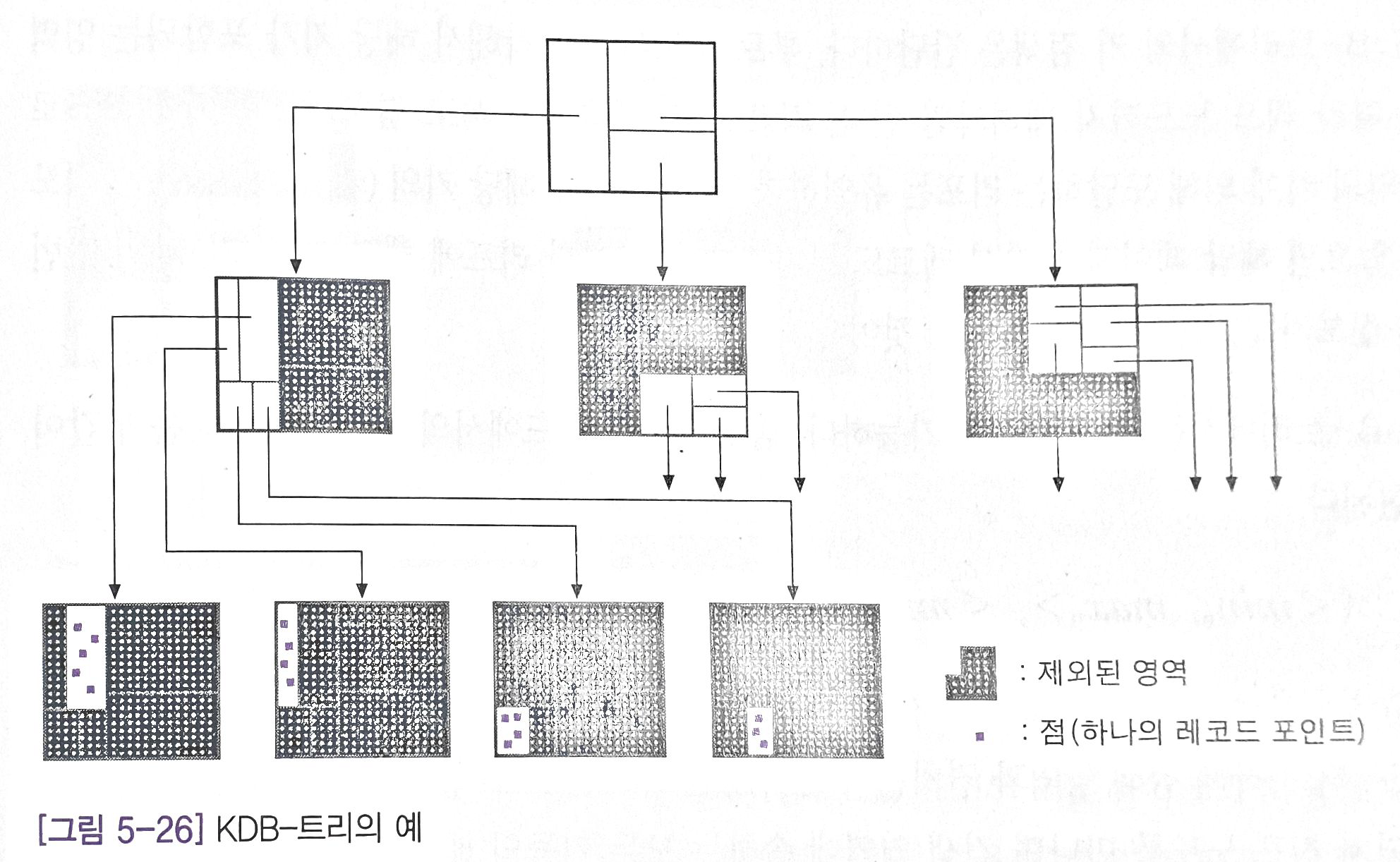 ※ KDB 트리의 모든 내부 노드는 영역 노드이며, 모든 리프 노드는 키 노드이다.