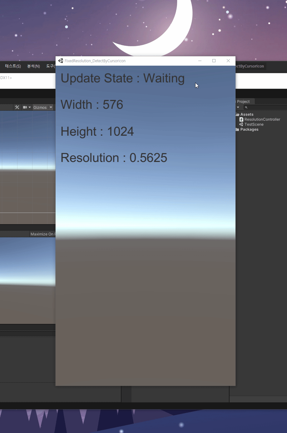 전체화면 테스트 이제 마지막으로 윈도우의 Areo 기능으로 화면 가장자리로 이동해서 크기가 달라졌을 때 처리만 추가하면 크기 조정 처리를 마무리할 수 있을 것 같다.