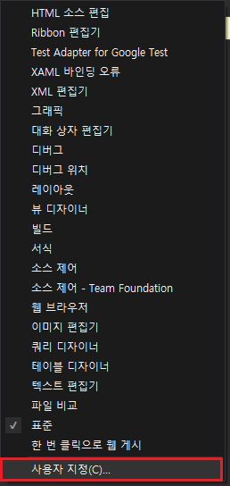 1. 툴바 우클릭 - 하단의 사용자 지정(C)... 클릭
