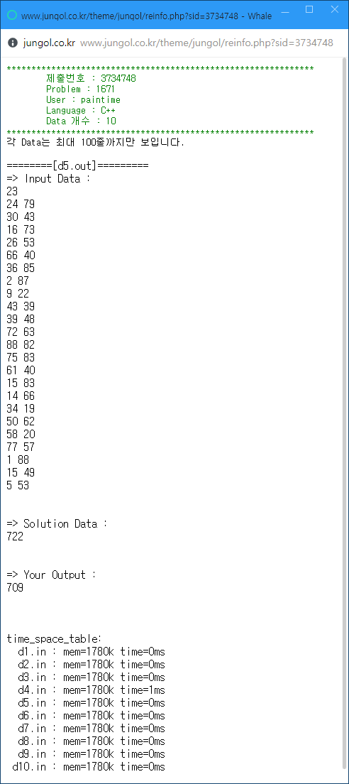 실패했습니다. 실패한 경우를 출력하니 신경쓰이는 부분이 보입니다.