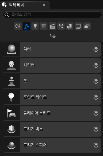 [창] - [액터 배치]를 누르면 좌측에 기존의 액터 배치 창이 생기게 된다.