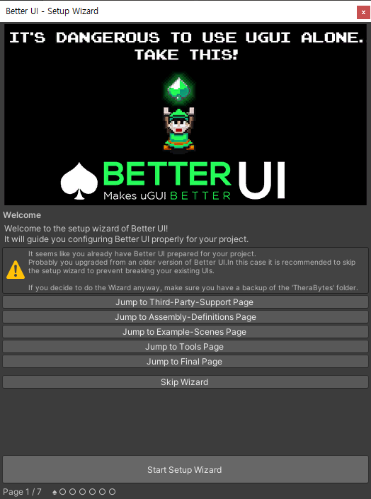 셋업 창 여는 법. 기본 설정은 [Start Setup Wizard] 버튼을 눌러 시작할 수 있다.