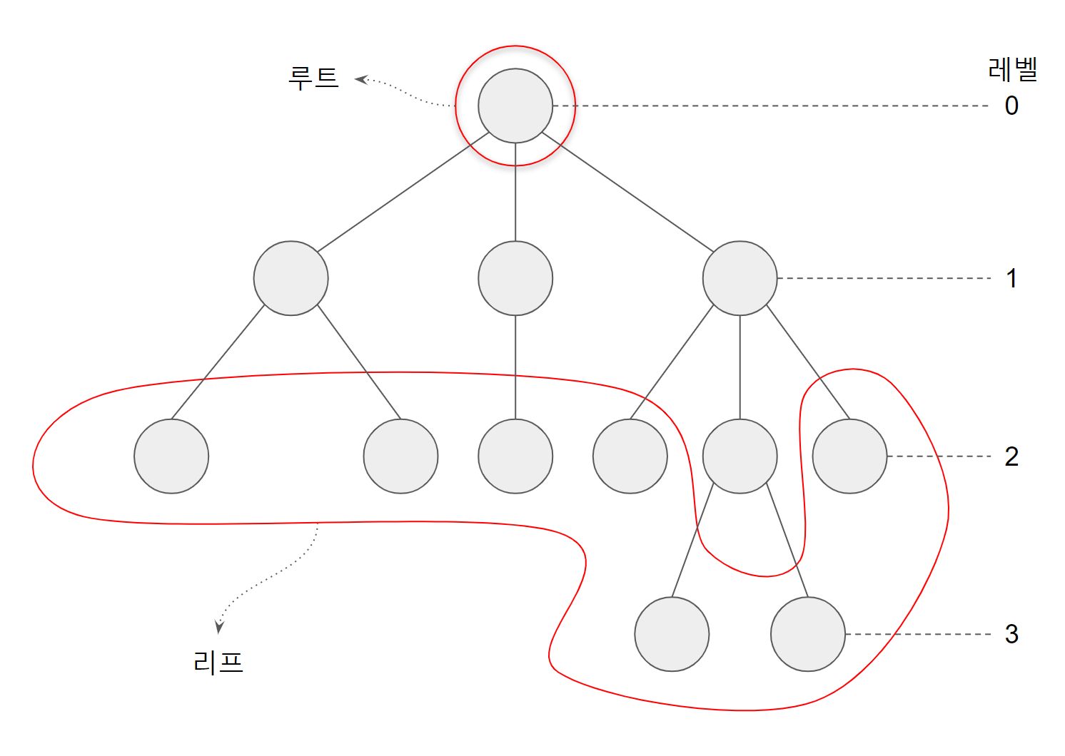 - 높이 트리의 노드의 레벨 중 가장 큰 값