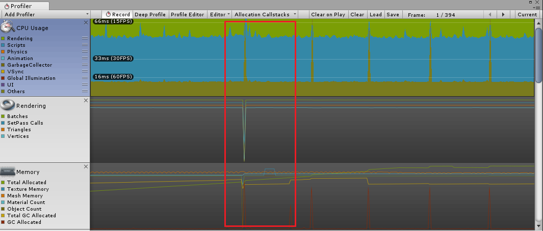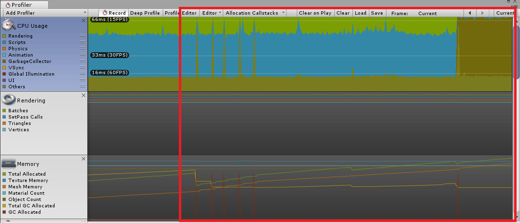 기본 씬 전환 시 약간 메모리 사용량이 올라간 것이 확인되었다.