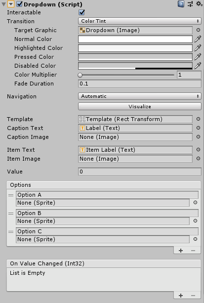 - On Value Changed 드롭다운의 옵션을 클릭한 경우 호출되는 이벤트
