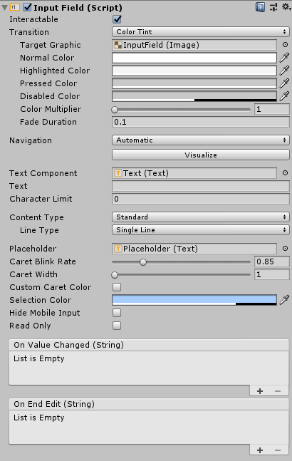 - On Value Changed 입력 필드의 텍스트가 변경되는 경우 호출되는 이벤트