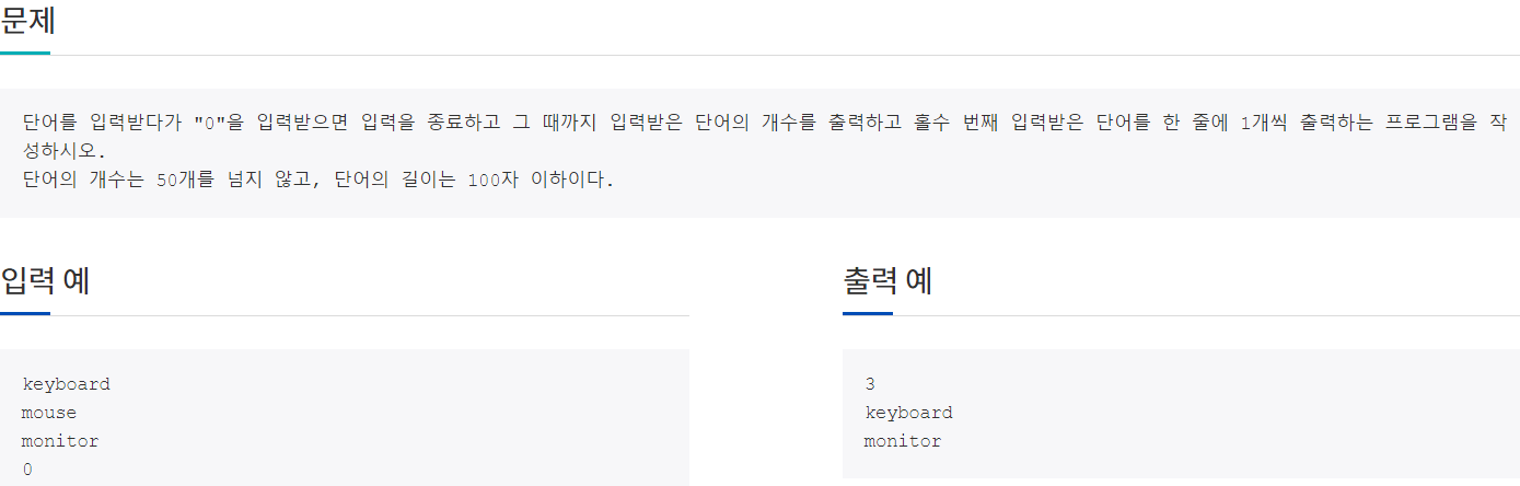 기초 내용인 만큼 다른 설명없이 문제와 코드만 간단하게 작성하도록 하겠습니다.