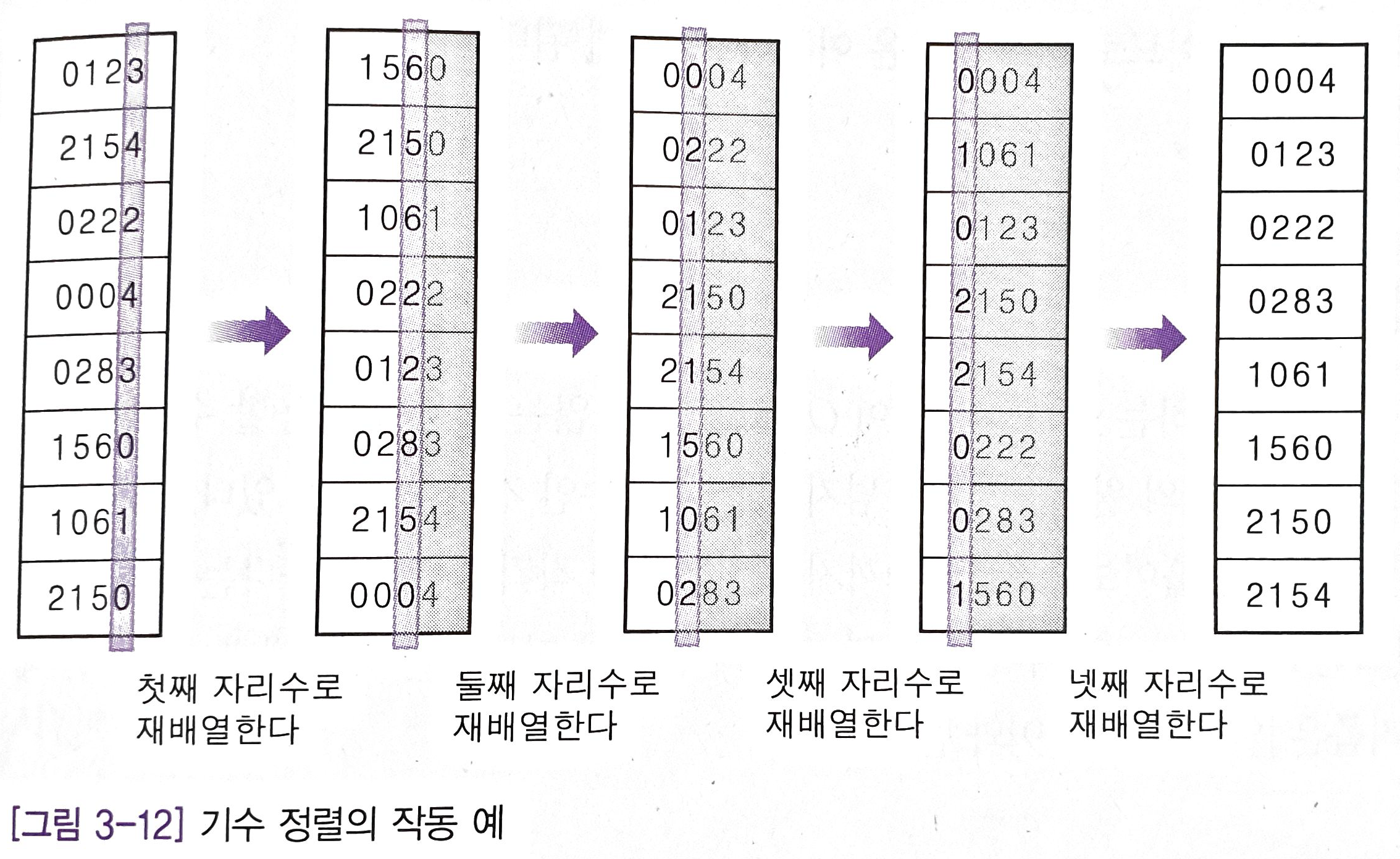 i 번째 자리수에 대해 A[1...n]을 안정성을 유지하면서 정렬한다.