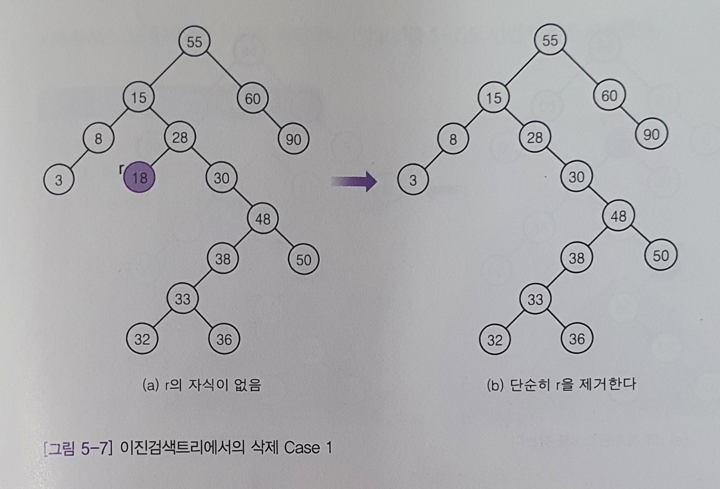 - 삭제할 노드에 자식이 없는 경우