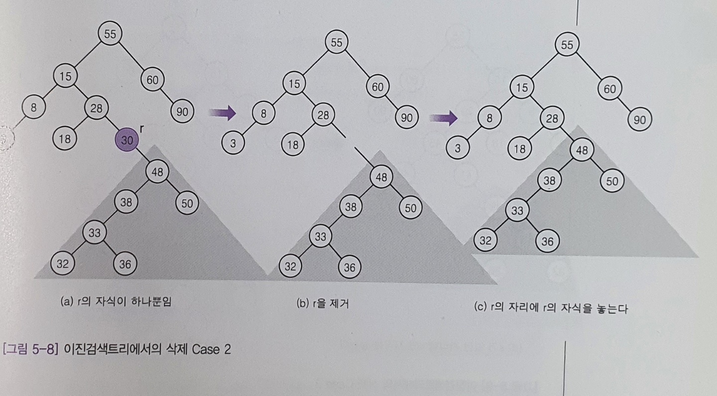 - 삭제할 노드에 자식이 하나 있는 경우