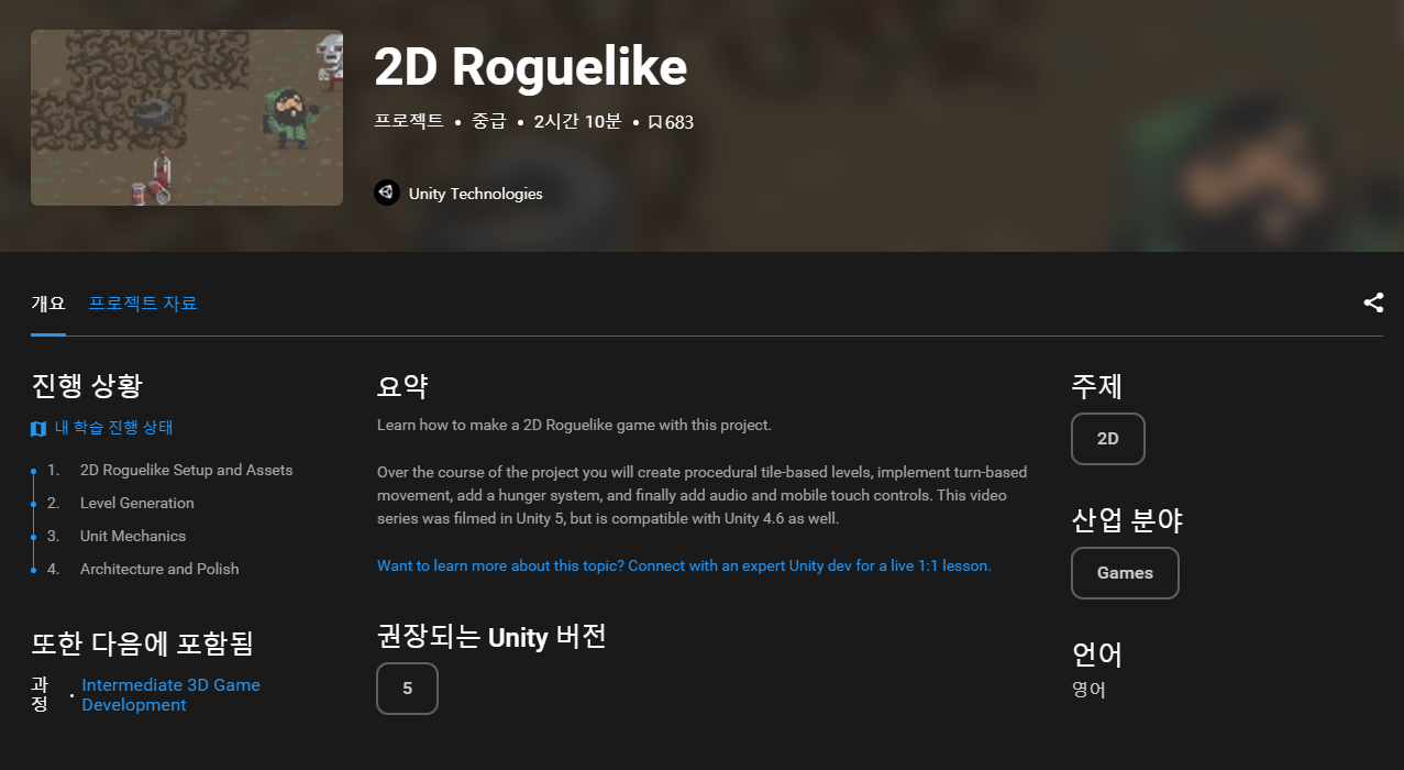 유티니 2019를 사용하여 튜토리얼 프로젝트 중 2D Roguelike를 구현한다.