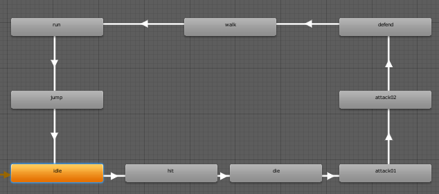 애니메이션 컨트롤러는 다음과 같이 설정했다.