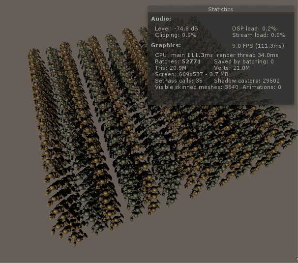 이 상태에서 GPU 인스턴싱을 사용하도록 처리했으며 GPU 인스턴싱 적용 방법은 다음과 같다.