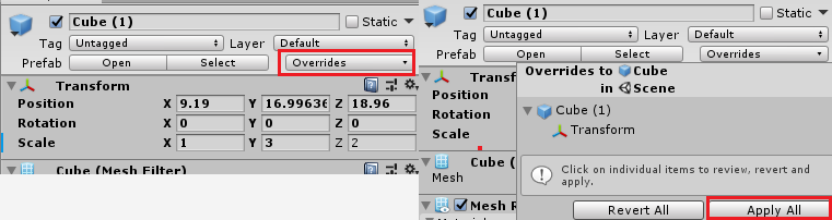 더 상세한 내용은 [Unity 매뉴얼 - 프리팹]을 참고하시기 바랍니다.