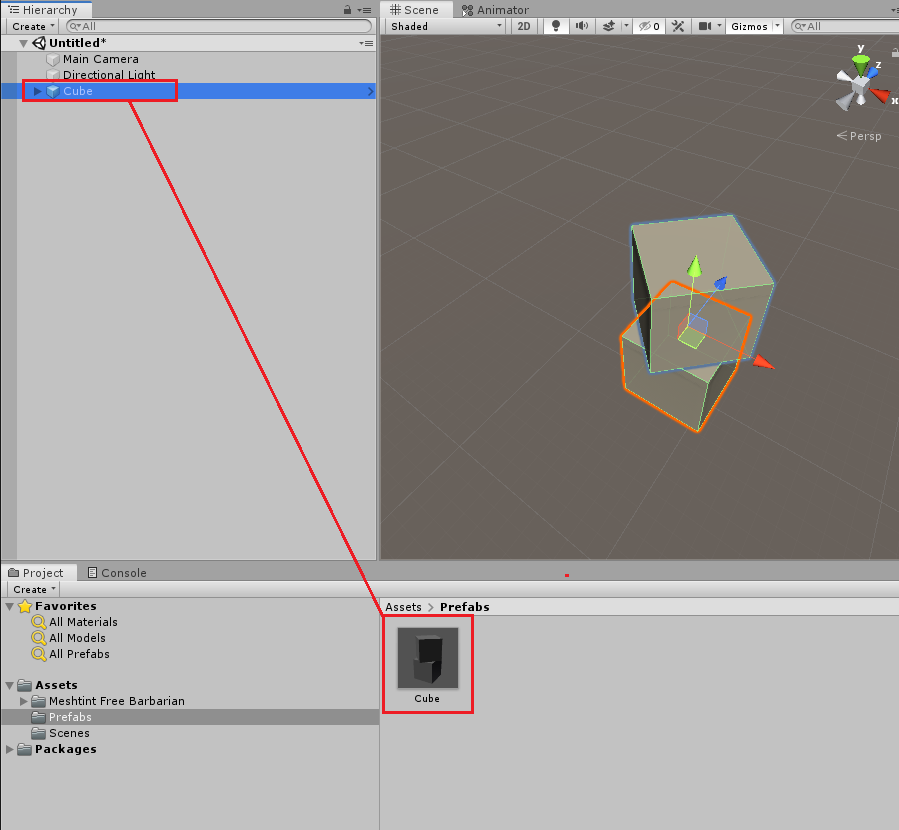 유니티의 프리팹은 Hierarchy 창에서 Project 창으로 오브젝트를 드래그 & 드롭하여 생성한다.