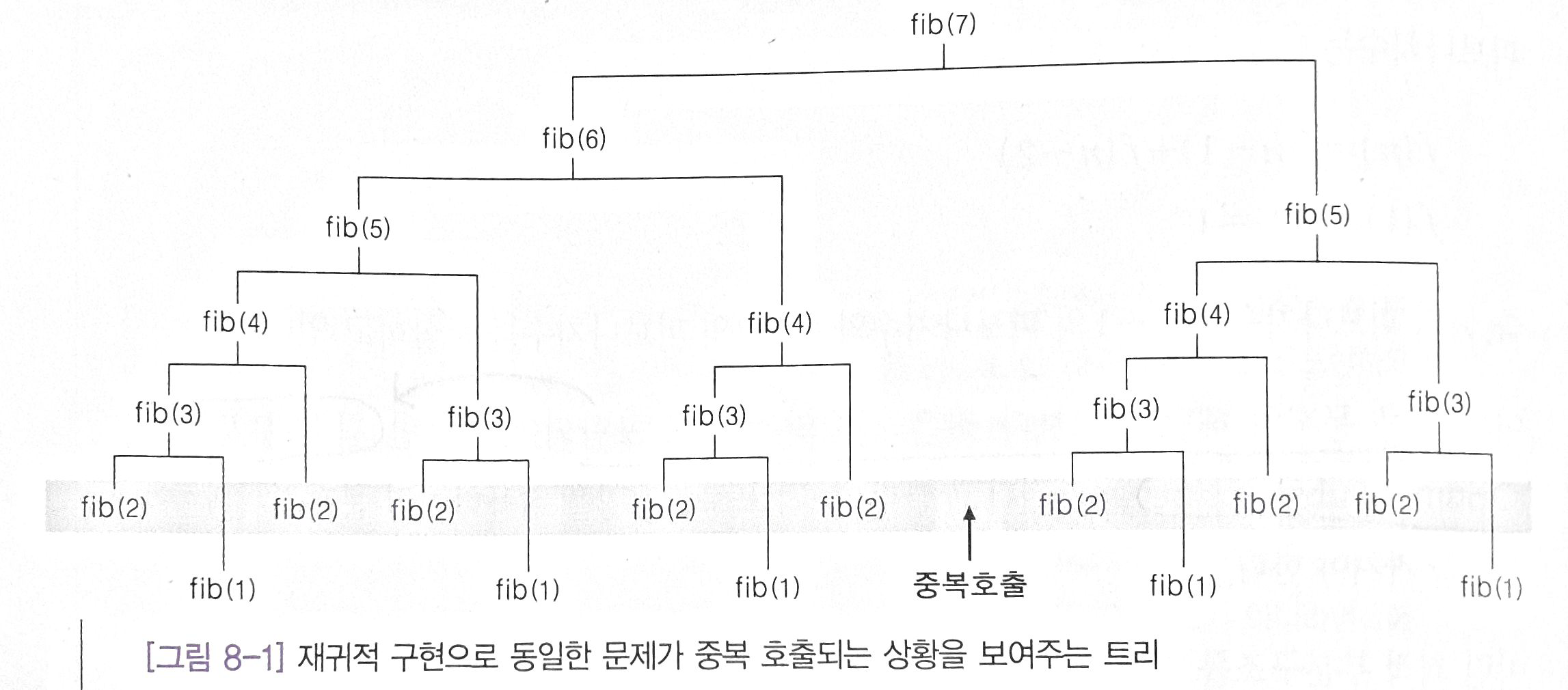 이를 재귀적으로 해결하기 위해서는 기존에 구했던 해답을 다시 구하는 등의 반복이 일어난다.