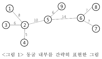 <그림 1>은 방이 9개인 동굴 내부를간략하게 나타낸 예이다.