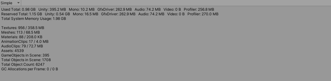 - Simple 모드 메모리에 올라가 있는 에셋의 총 개수와 사용량을 표시한다.